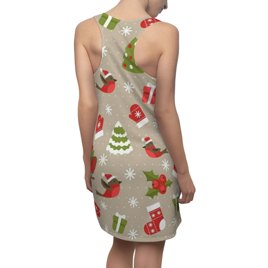 Christmas Women's Dress, Holiday Party Racerback Dress, Festive Xmas Apparel, Red Green Snowflakes Outfit, Winter Fashion Clothing